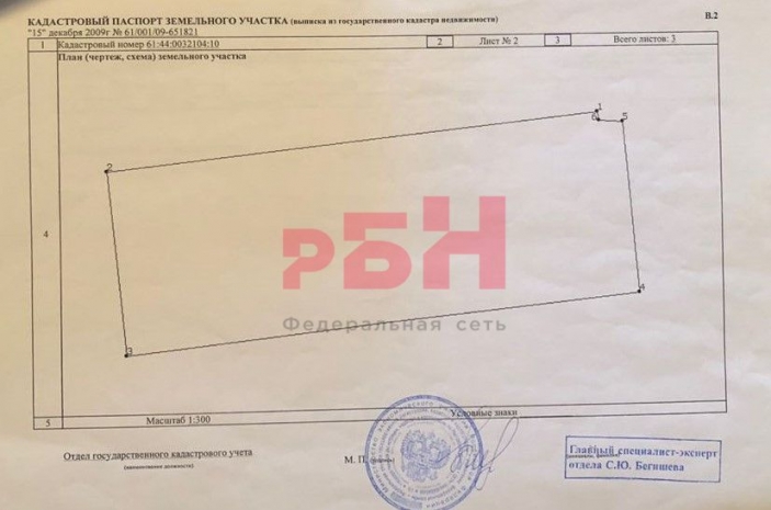 - кадастровый номер земельного участка: 61:44:0032104:10, площадь 11,31 сотка
