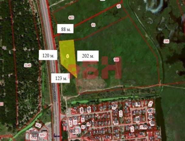 позади участка, на восточной стороне, в перспективе будет многоквартирная жилая застройка на 14,85 Га, поэтому участок представляет собой интерес для ключевой опорной точки торгового назначения на выезде из данного жилого массива