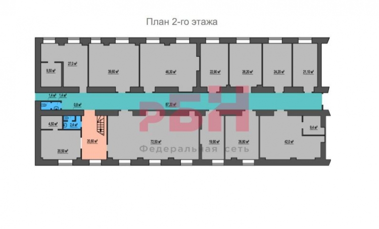 2-й этаж 525 кв.м. Из них количество кабинетов 12