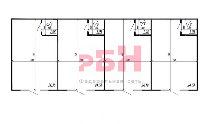 - площадь каждого помещения 24,38 кв.м