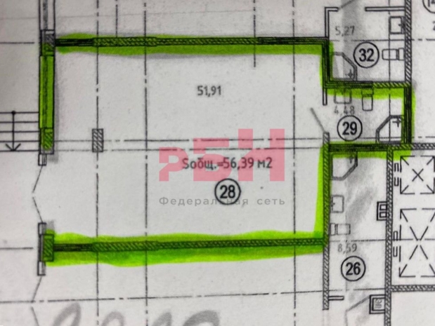 Торговое фасадное помещение в ЖК Красный Аксай площадью 56 кв.м по адресу г. Ростов-на-Дону, ул. Богданова 79