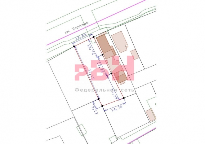 - Размер участка: 14 м фасад, глубина 43 м