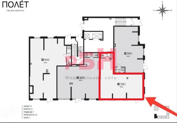 Сдается Угловое помещение на фасаде современного ЖК Smartpolet площадью 73 м² по адресу г. Ростов-на-Дону, Берберовская улица, 17 строение 2