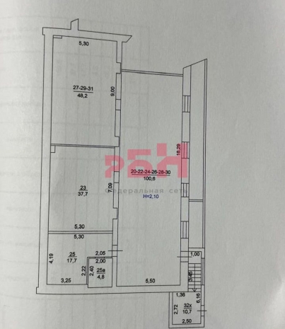 - высота потолков 2,1м