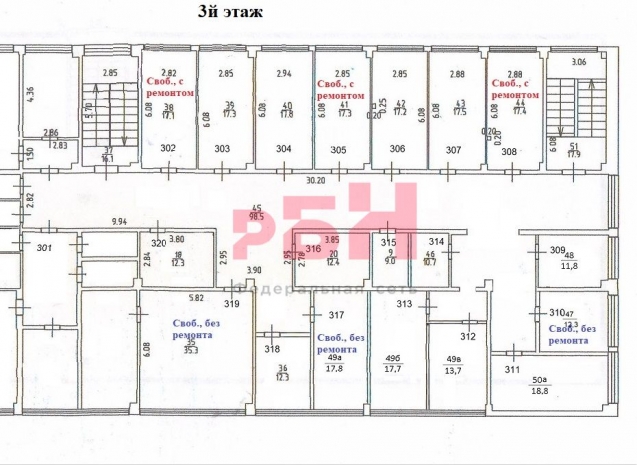 В наличии 6 кабинетов от 17 до 35 кв.м