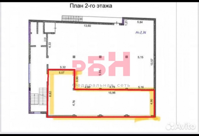 - высота потолков 3,34м