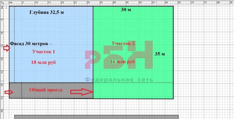 - фасад 30 м., глубина 32,5 м