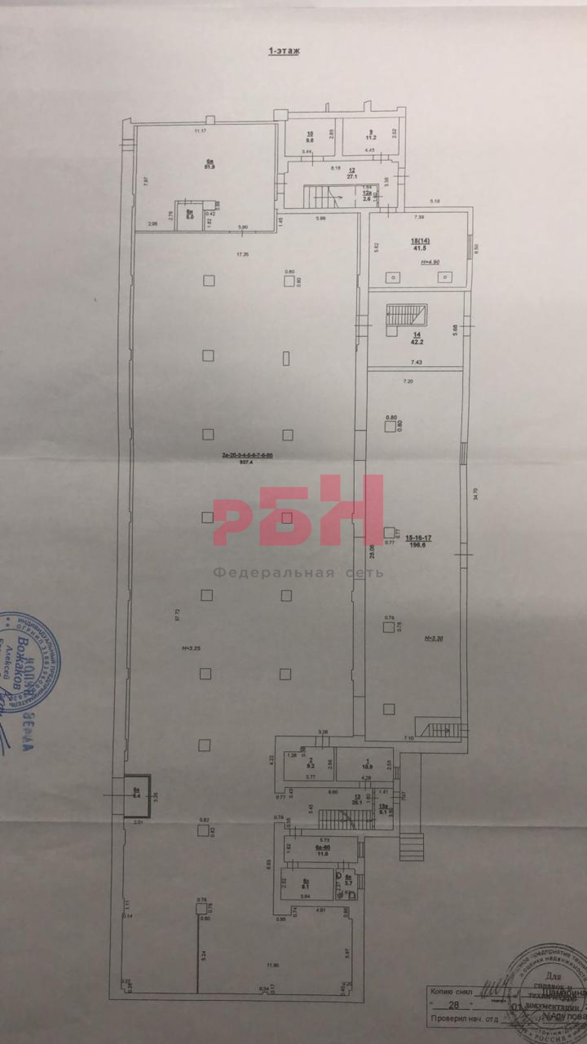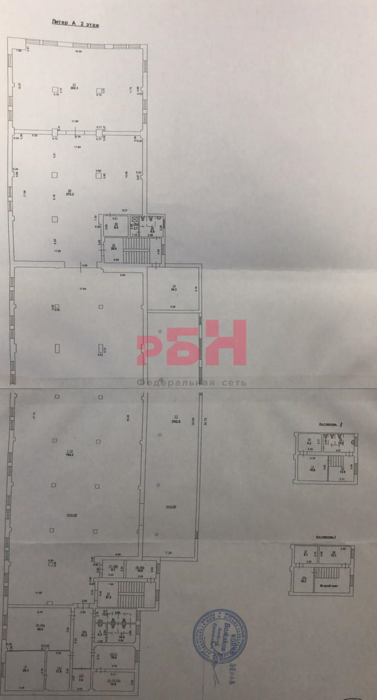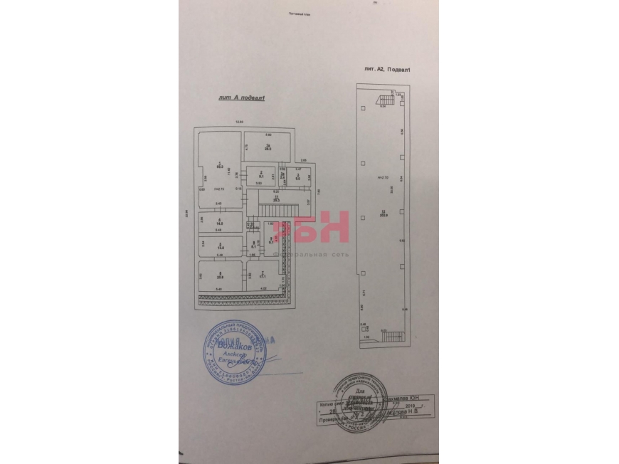 - площадь 1-го этажа 1220 кв.м, площадь 2-го этажа 1629 кв.м, подвал площадью 388 кв.м