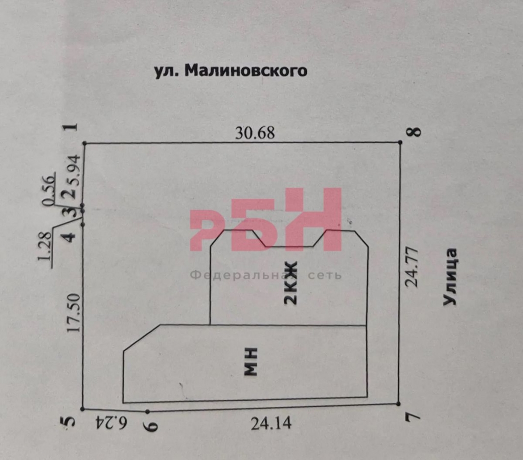 - фасад на ул. Малиновского - 30,68 метров